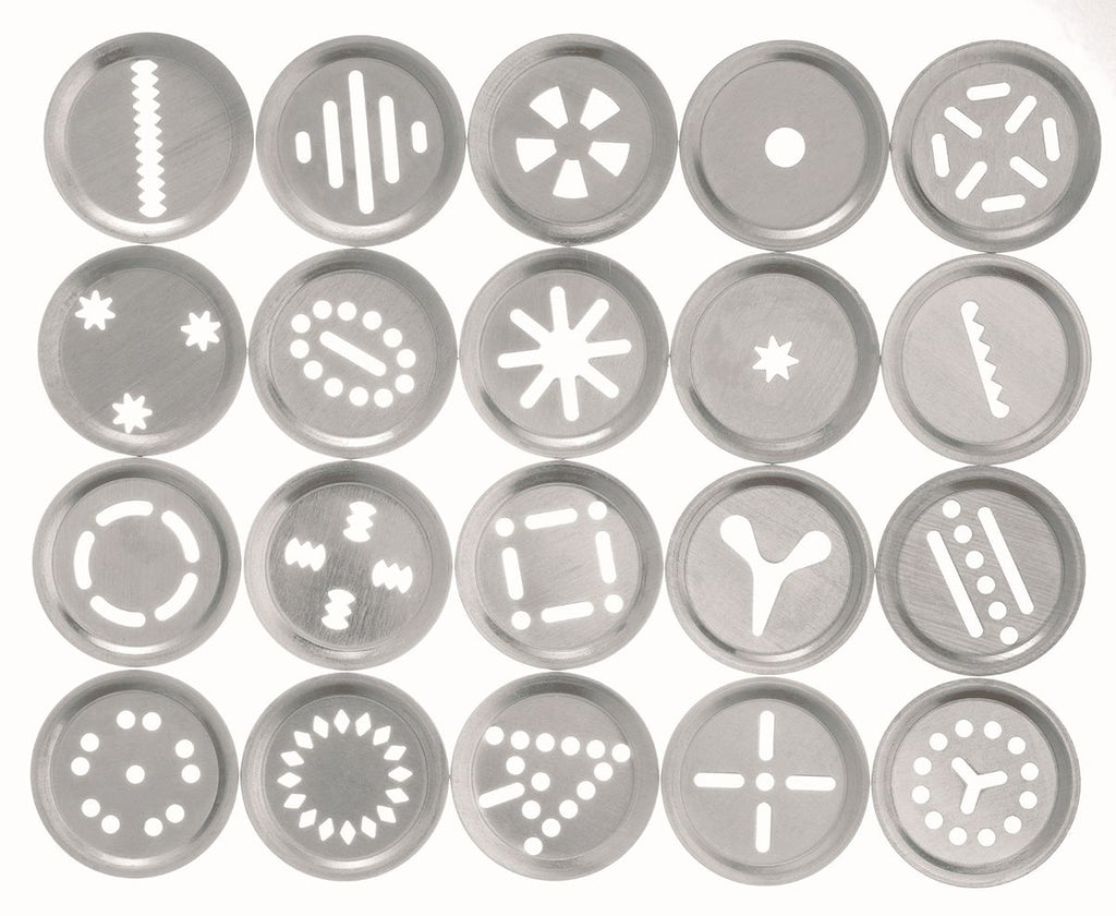 Für ungetrübten Backspaß direkt auf dem Backblech: Exakte Teigportionen durch einstellbare Menge. 20 Motiv-Lochscheiben aus Aluminium, vier Spritztüllen aus ABS-Kunststoff bieten unbegrenzte Möglichkeiten für Gebäck und Verzierungen.