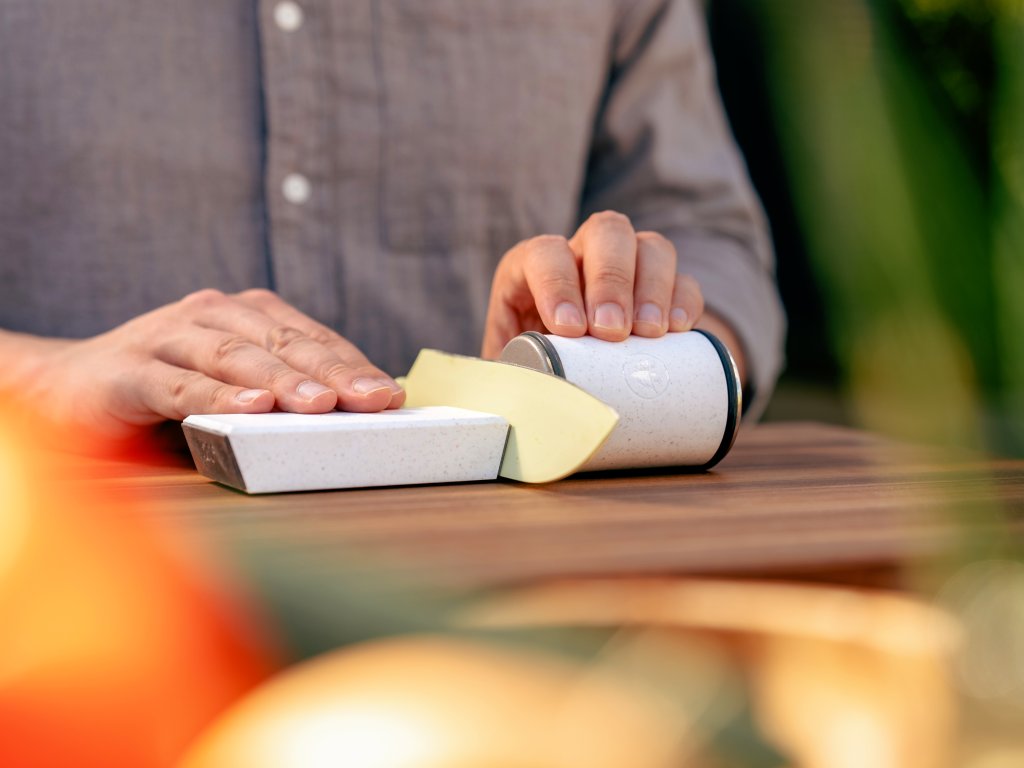 Mit zwei Schleifwinkeln verleihst du vom Küchen- bis zum Taschenmesser all deinen Klingen einfach neue Schärfe. Aus ozeangebundenem Kunststoff gefertigt, fügt sich der HORL ®3 Cruise in passender Sand-Optik in deine Küche ein. Dort begleitet er dich bei deinen Abenteuern, jeden Tag.