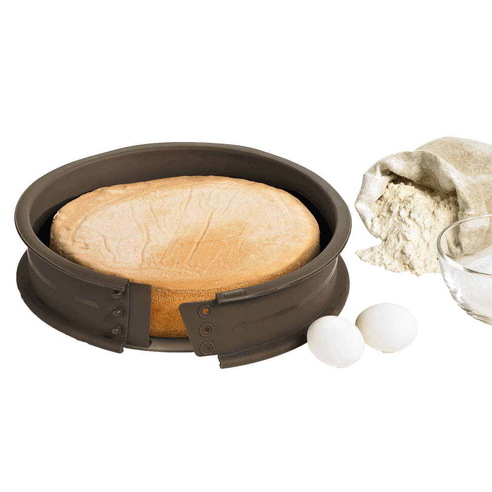 Die FlexiForm Springform besteht aus einem flexiblen Ring aus Premium Platin Silikon und einem Glasboden.